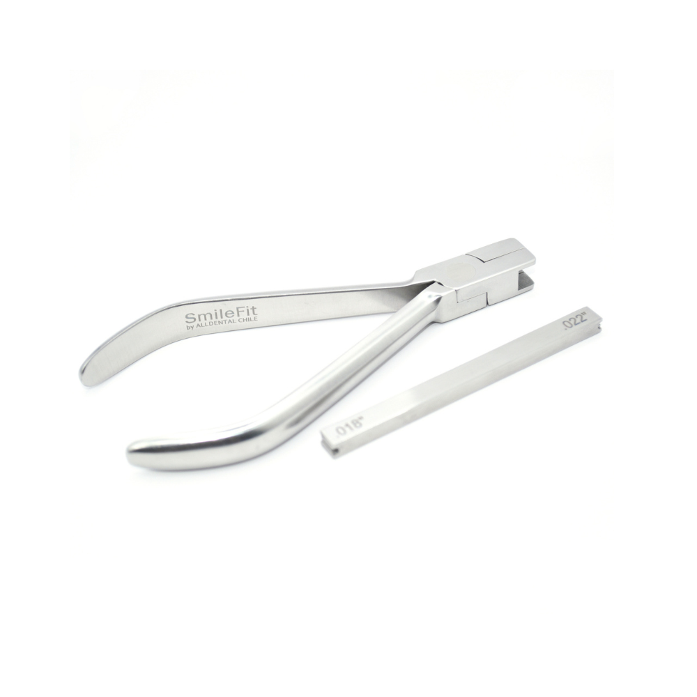 Permite aplicar torque en segmentos pequeños del arco sin distorsionar zonas adyacentes. Incluye alicate y llave. Articulación remachada. Acero inoxidable.