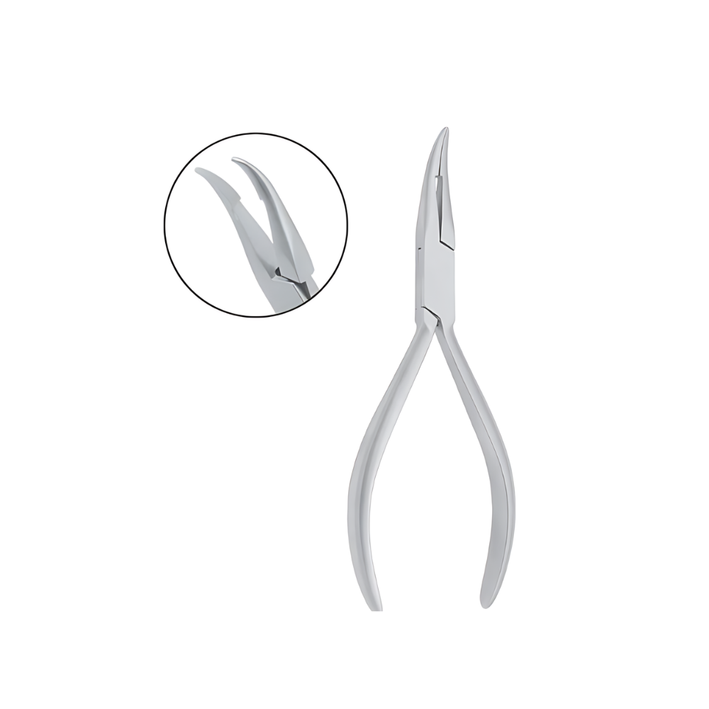 Puntas serradas delgadas para agarre firme. Forma delgada y angulada para fácil acceso al área de trabajo. Articulación tipo caja. Acero inoxidable.